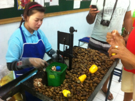 We also signed up for a couple of tours to see some sights including some temples, visit an elephant sanctuary, a cave tour, a village that is wholly on the water (floating), a cashew plantation - you won't believe the effort it takes to get a single cashew nut! No wonder they are so expensive! Each one of the yellow fruit (below top right pic) produces one single cashew nut which is extracted by hand!